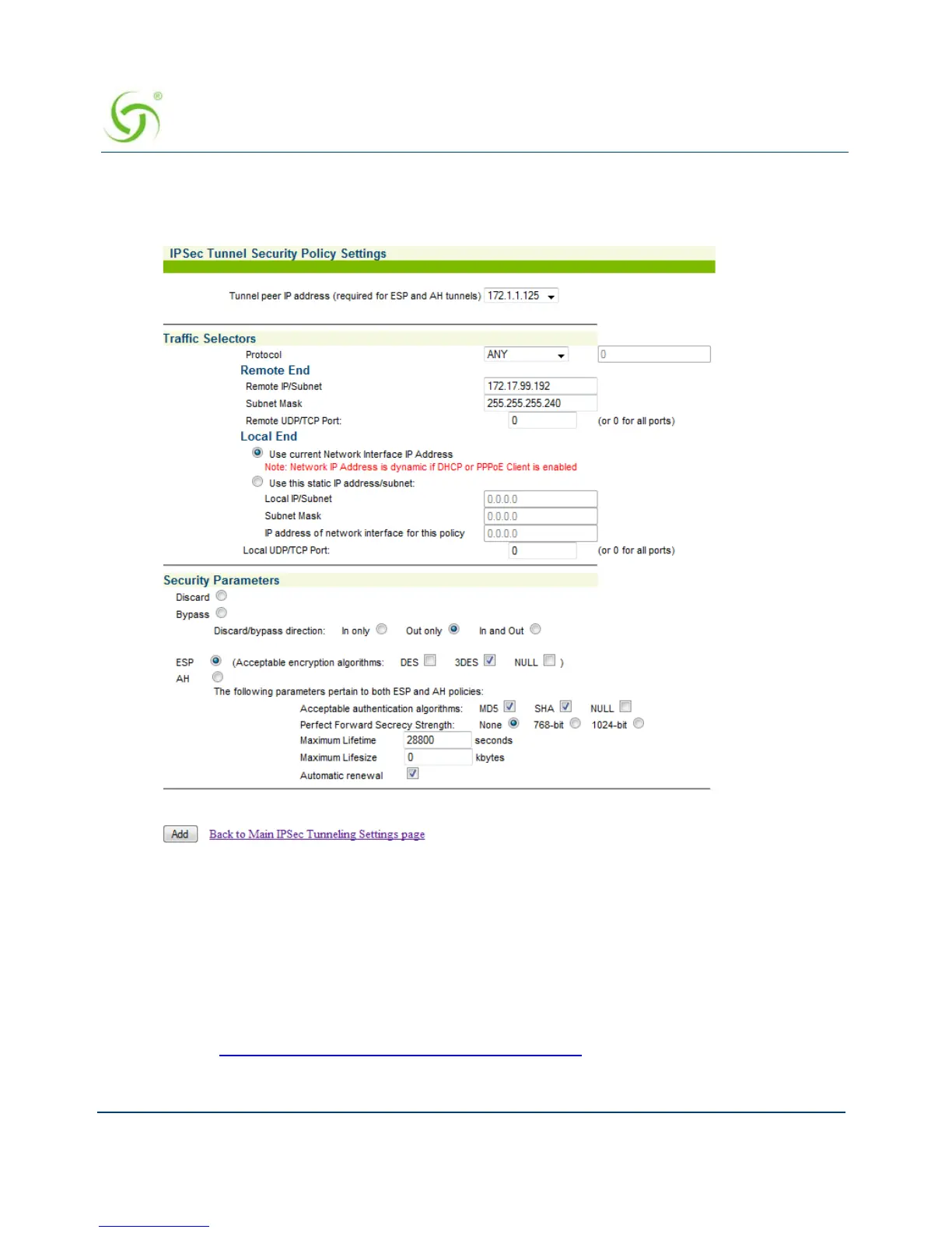 1. In the IPSec Security Policies table, click the Add button to add an entry. The IPsec
