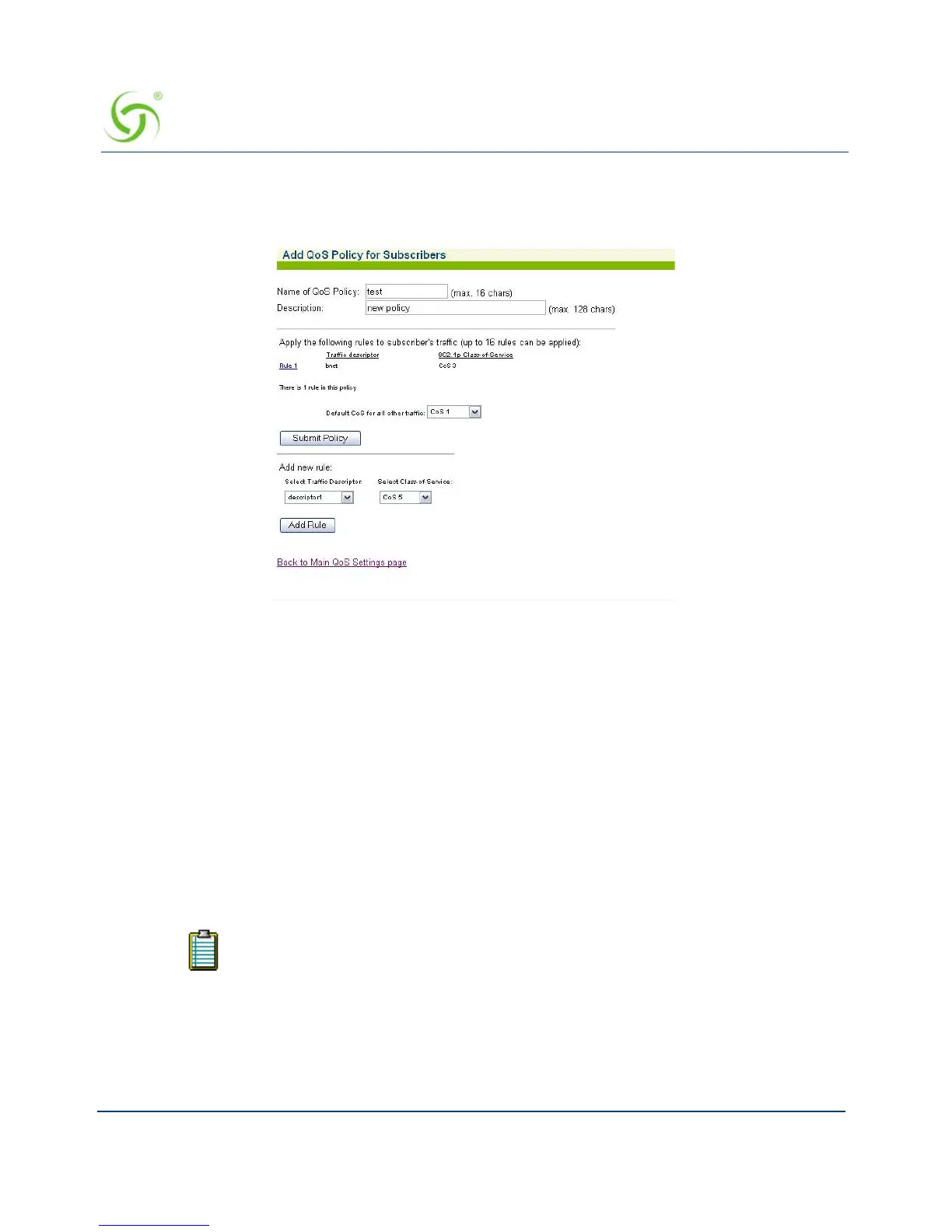 defined in order to modify it.The Add QoS Policy for Subscribers screen appears: