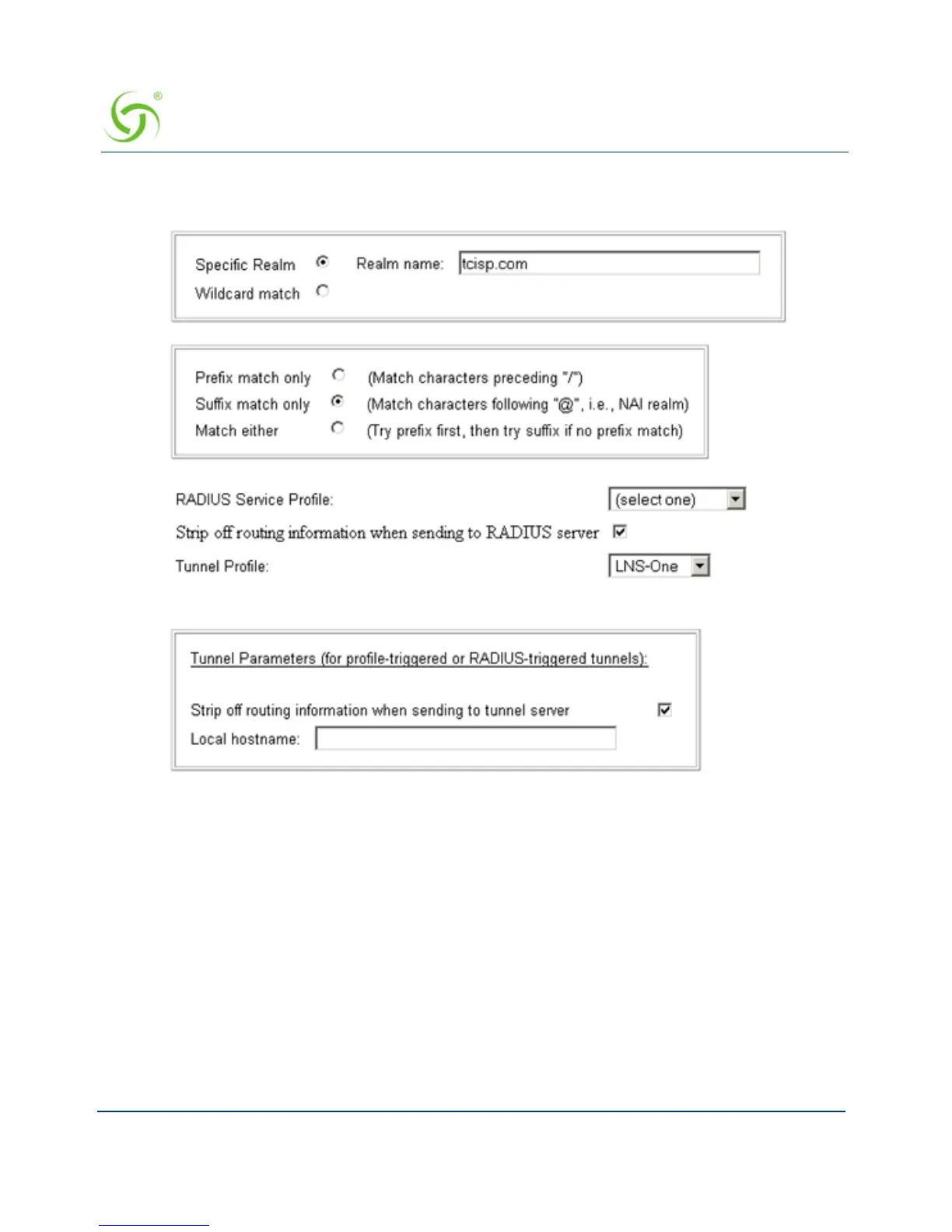 “username@tcisp.com”. Since this policy references a tunnel profile, no RADIUS access