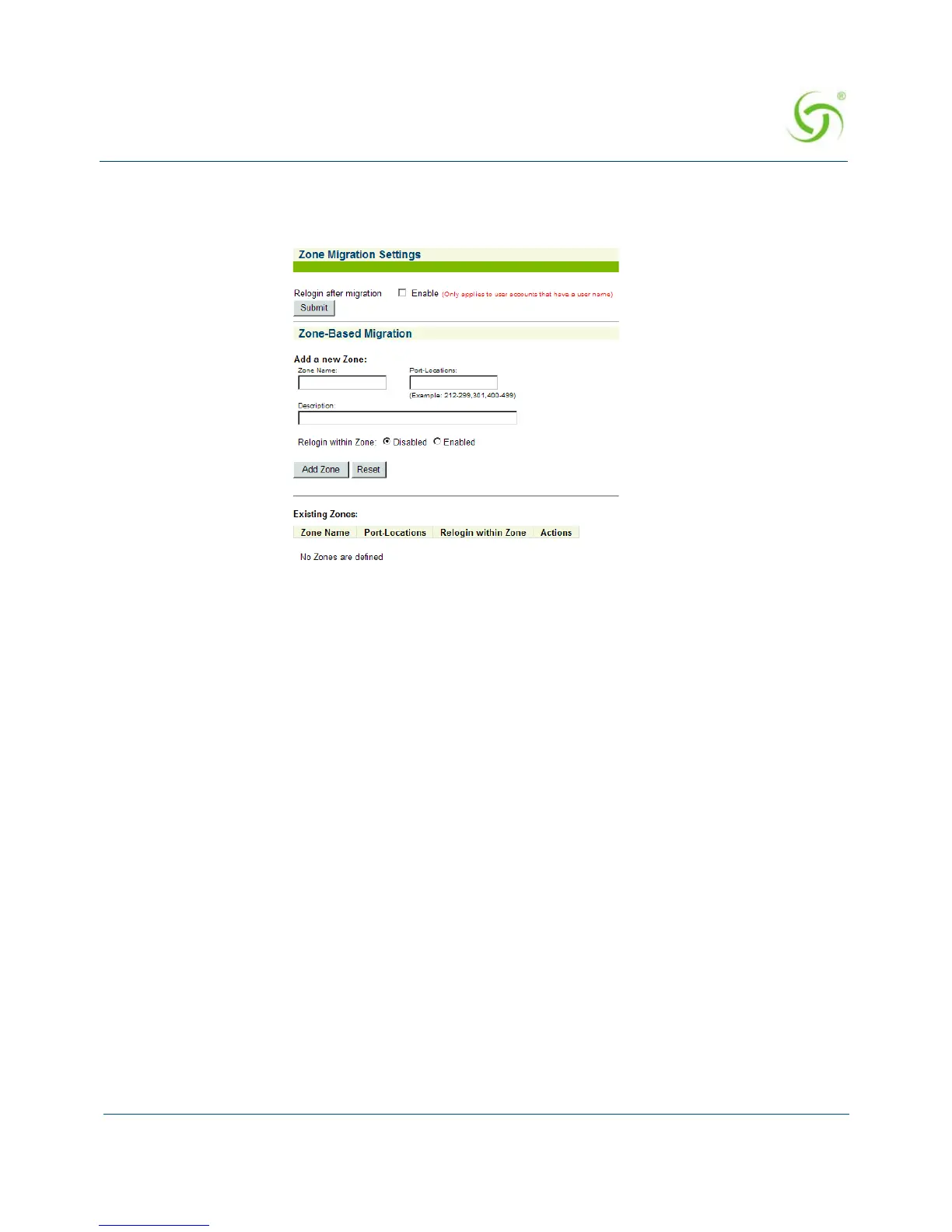 2. Select Relogin after migration to enable the Zone Migration feature.