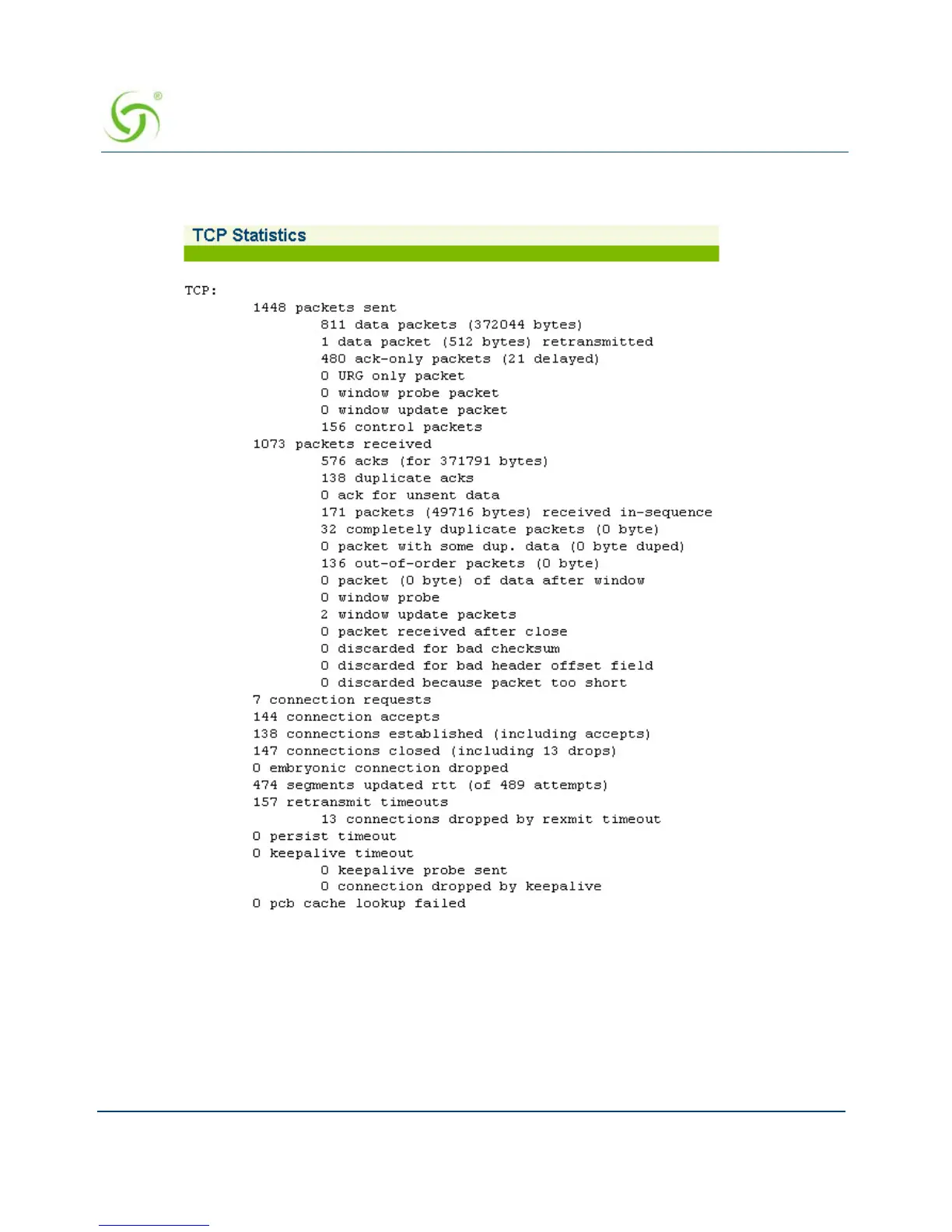 The TCP Statistics screen appears: