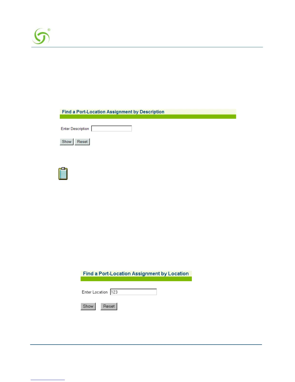 3. Click on the Show button to view the specified port-location assignment, or click on the