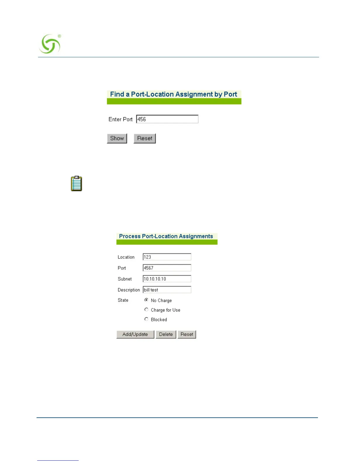 3. Click on the Show button to view the Process Port-Location Assignments screen, or click