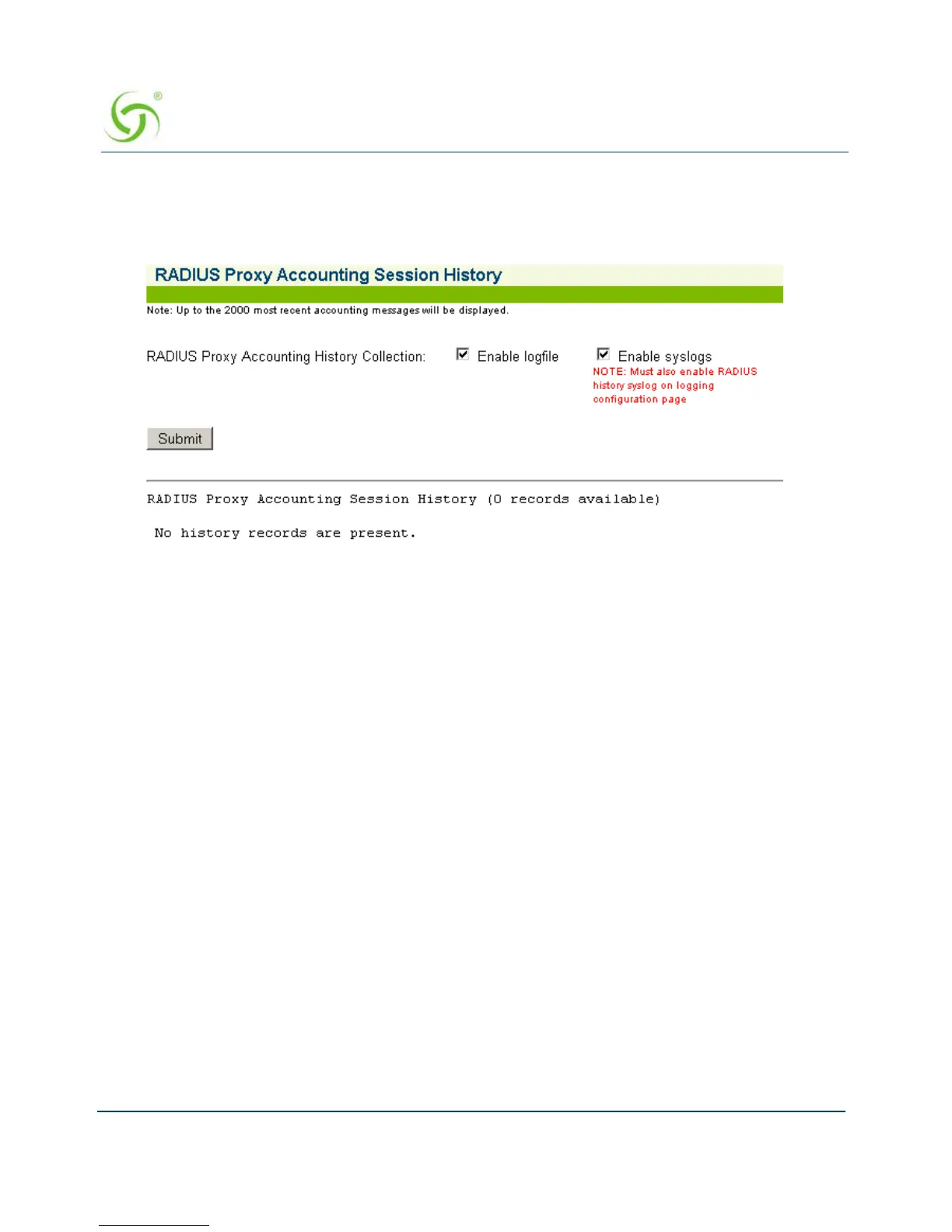 third set of Syslog parameters on that page pertains to the RADIUS History Log.