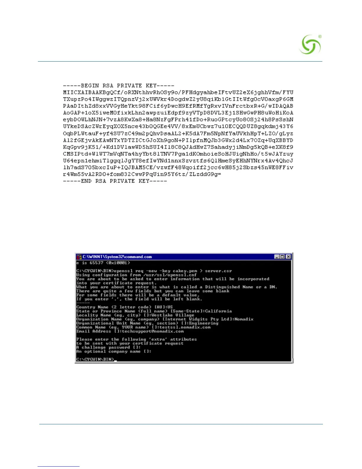 >openssl req -new -key cakey.pem > server.csr