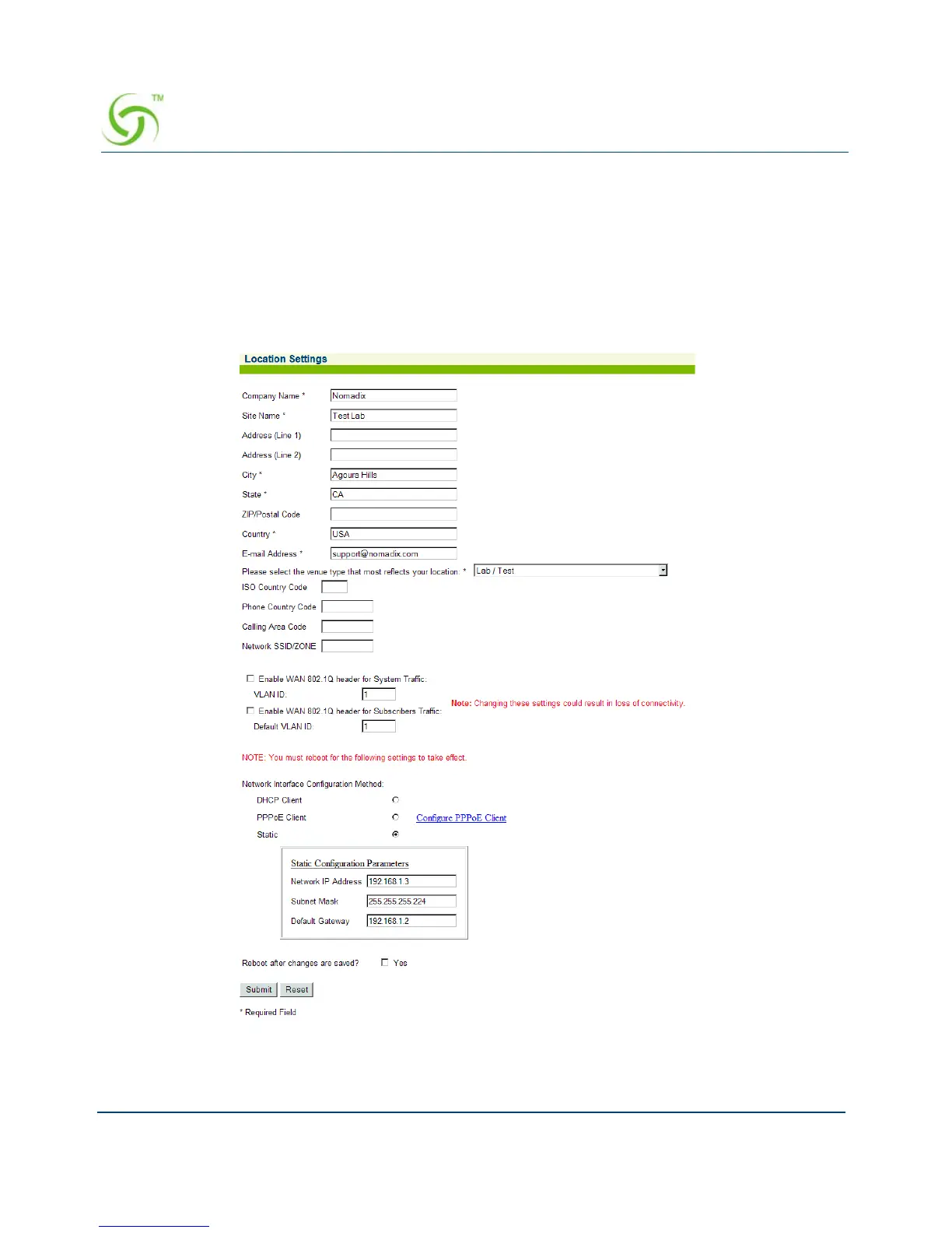 1. From the Web Management Interface, click on Configuration, then Location. The