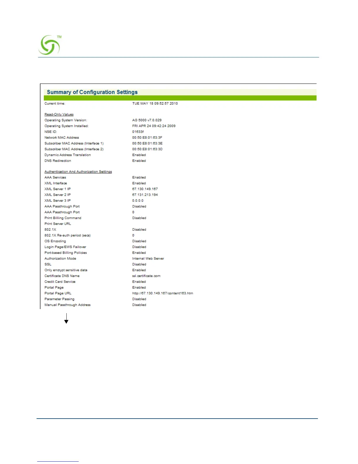 The Summary of Configuration Settings screen appears (partial screen shown here):