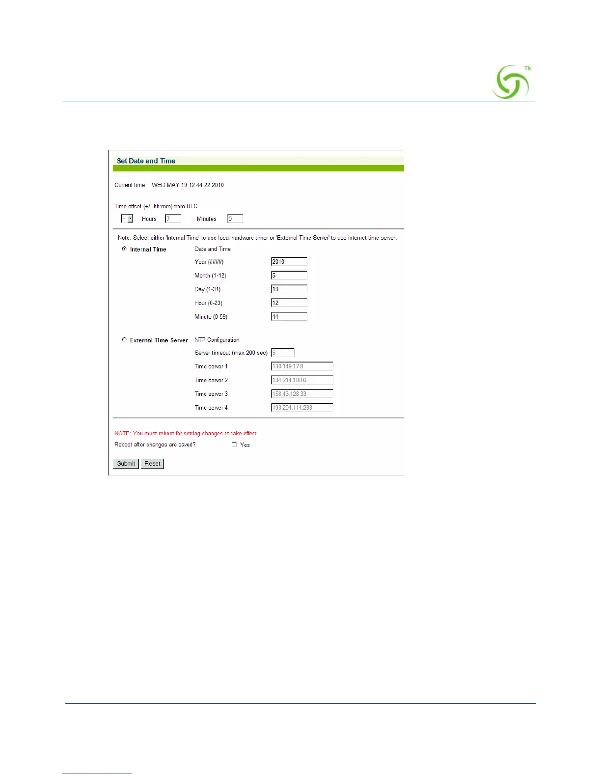 2. Select Internal Time to use the local hardware time or select External Time Server if you
