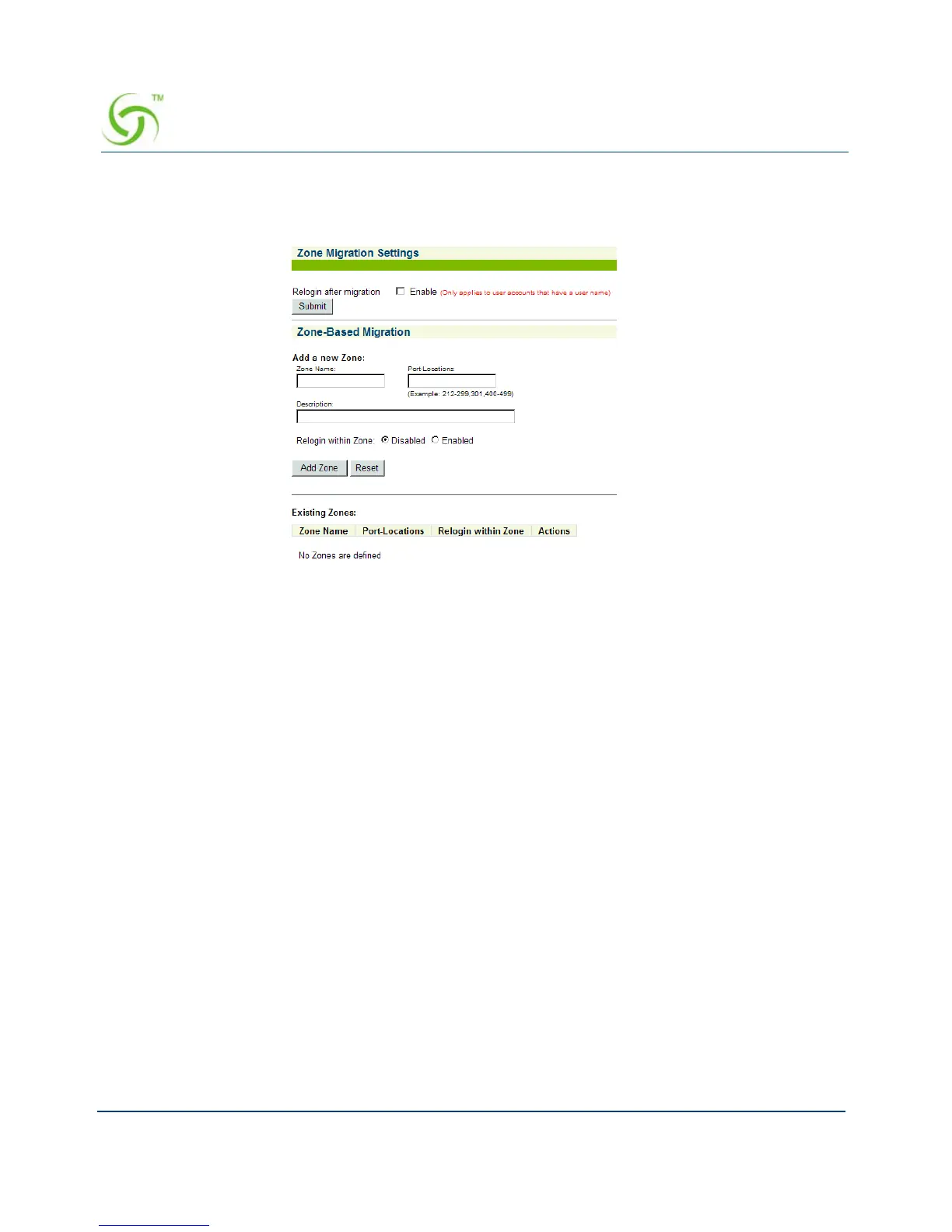 2. Select Relogin after migration to enable the Zone Migration feature.
