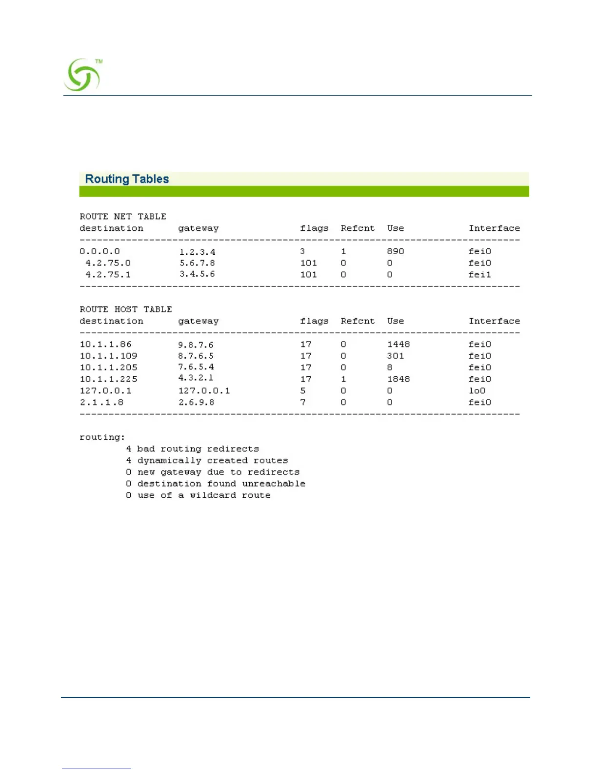 The Routing Tables screen appears: