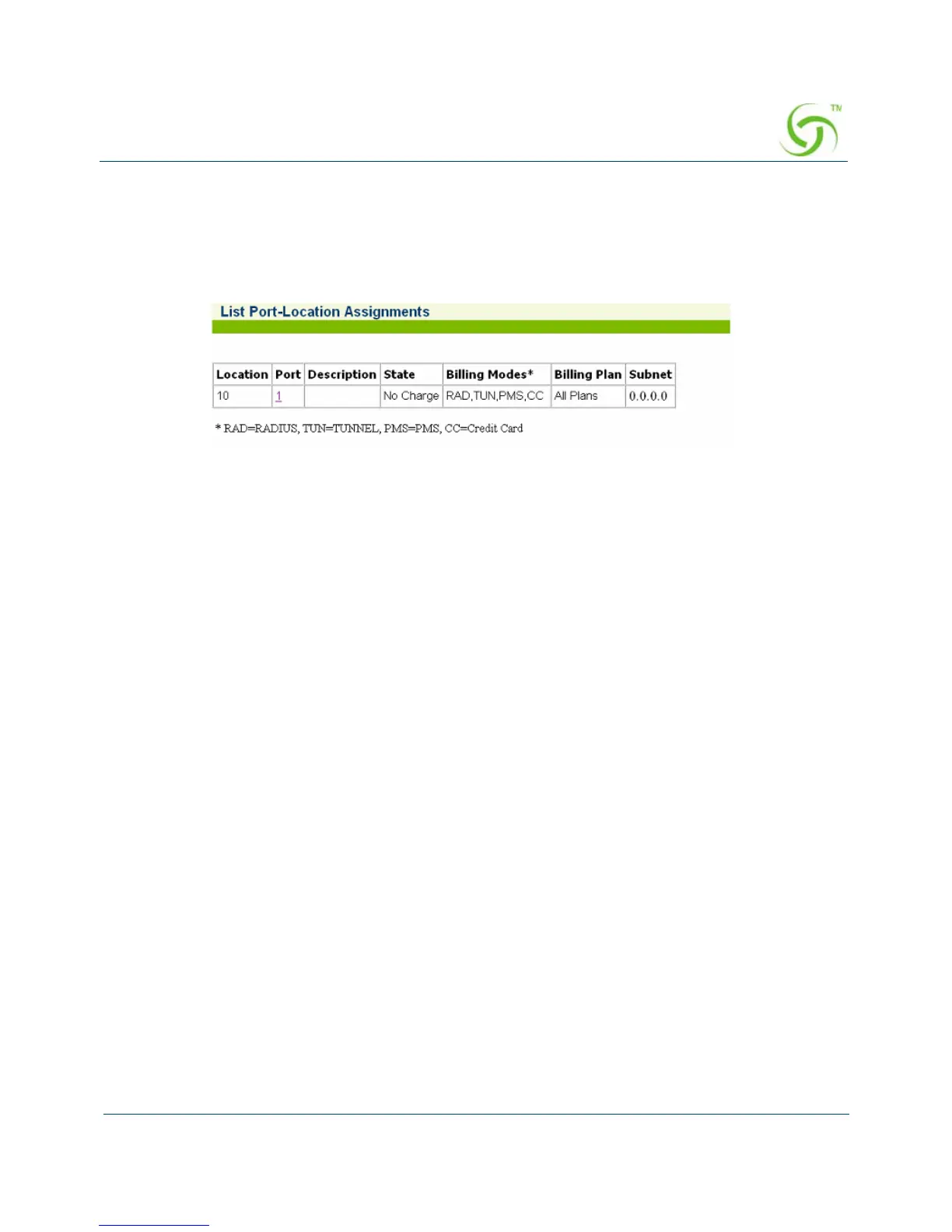 Network Info, then click on List. The List Port-Location Assignments screen appears: