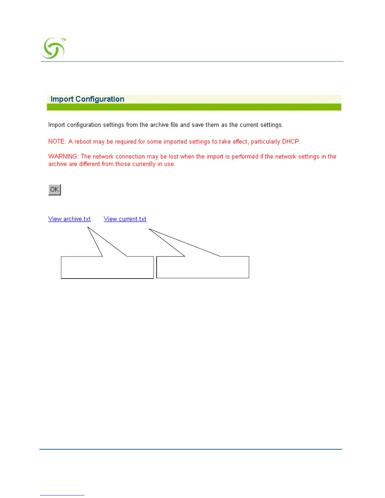 1. From the Web Management Interface, click on System, then Import. The Import