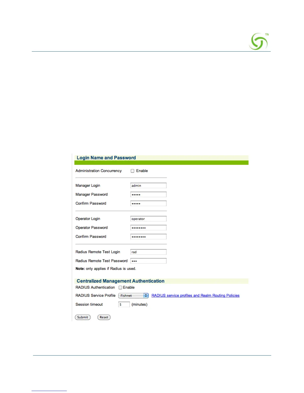 Only managers can assign a username and password for the remote RADIUS testing login