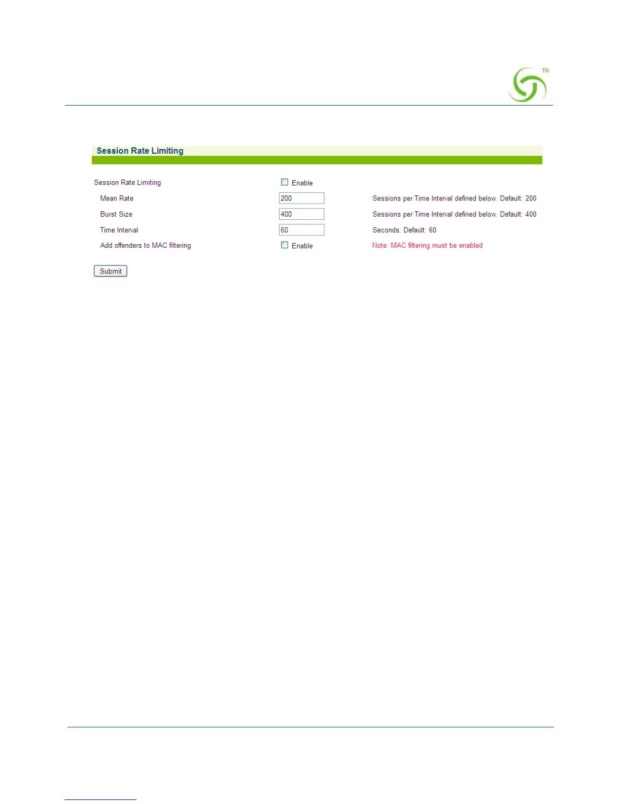 2. Click on the check box for Session Rate Limiting to enable (or disable) this feature, as
