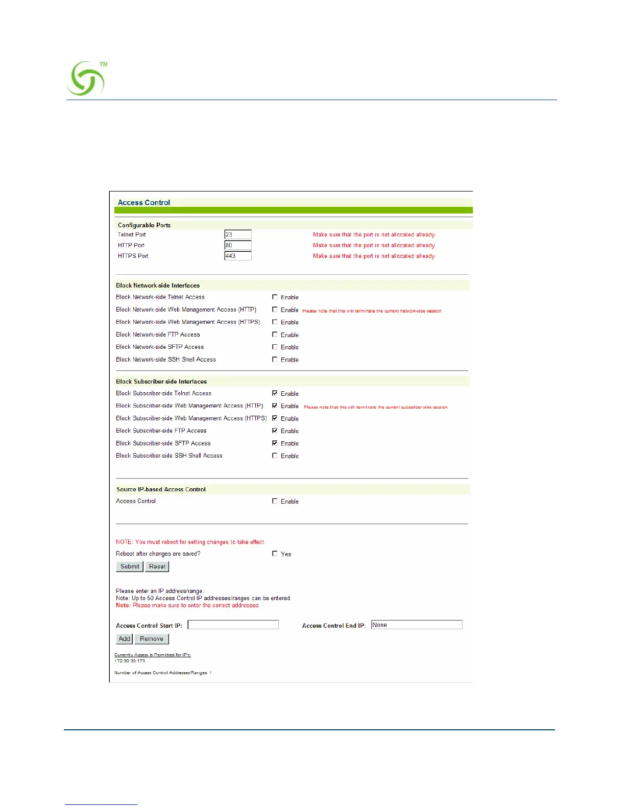 1. From the Web Management Interface, click on Configuration, then Access Control. The
