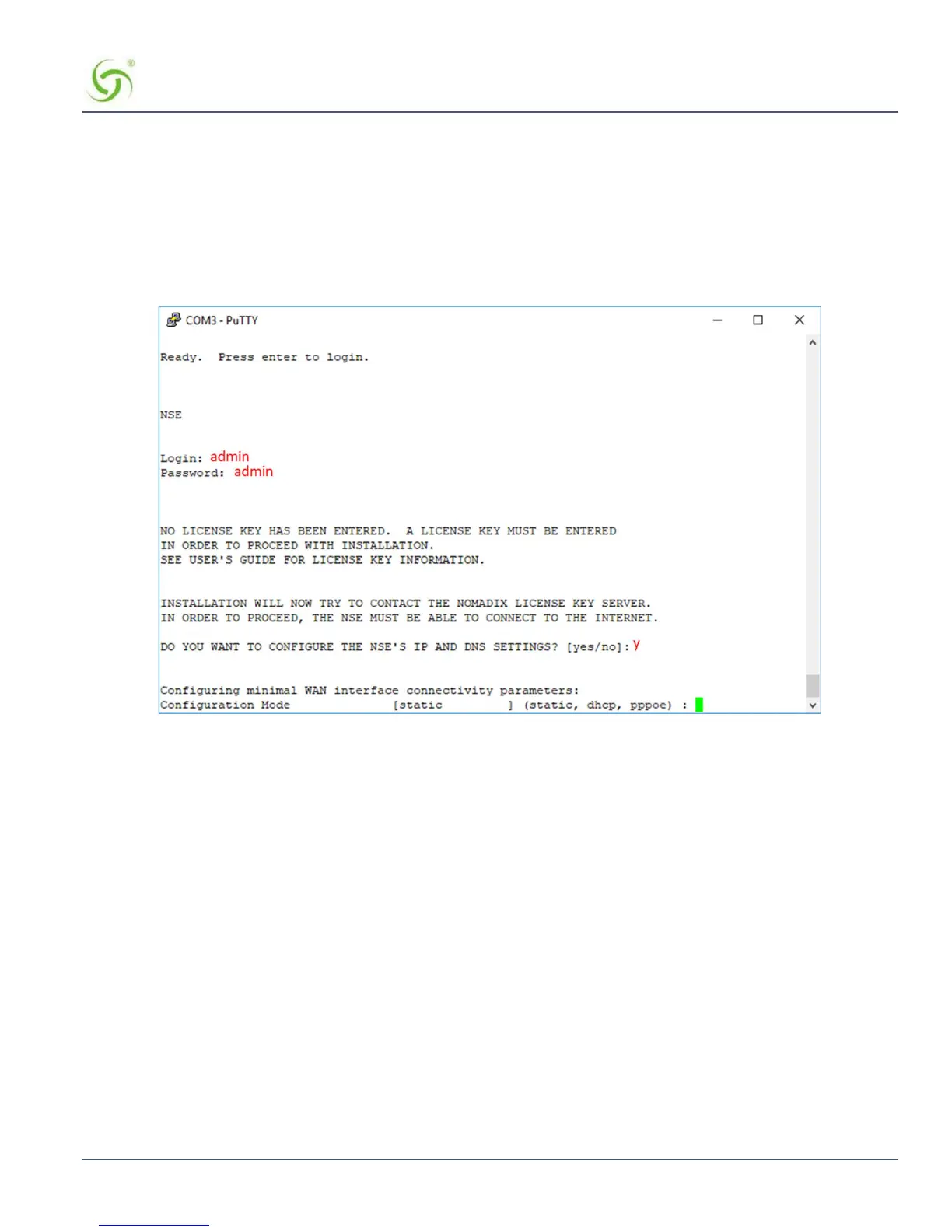 The initial minimal WAN port configuration mode will be displayed as shown in Figure 1.