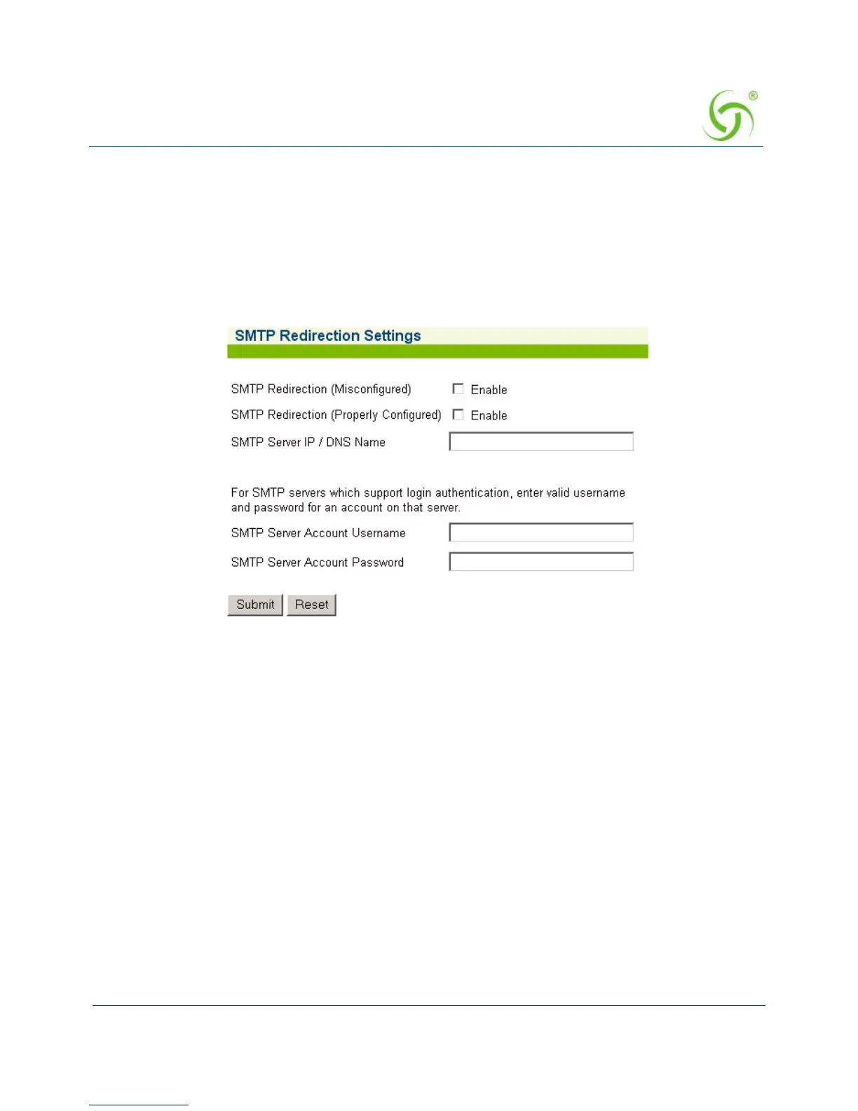 If you enable SMTP redirection, you must provide the IP address of the SMTP server.