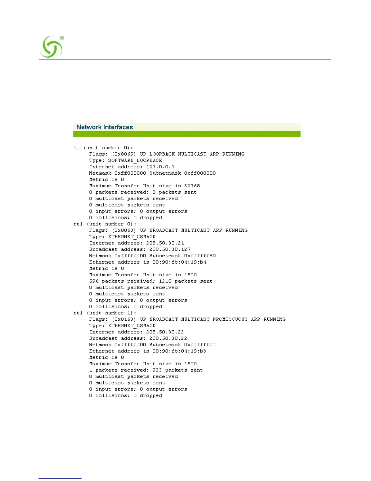 You can display the network interfaces which are presented as a detailed listing of all interface