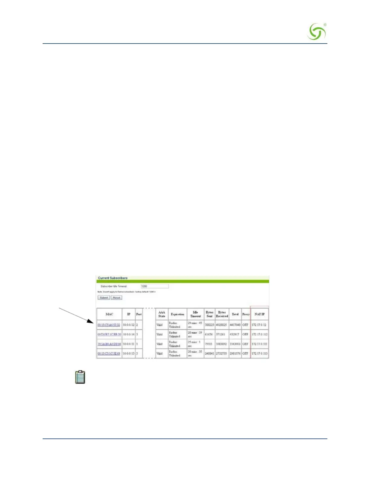 You can display a listing of all the subscribers currently connected to the system. The list includes the MAC