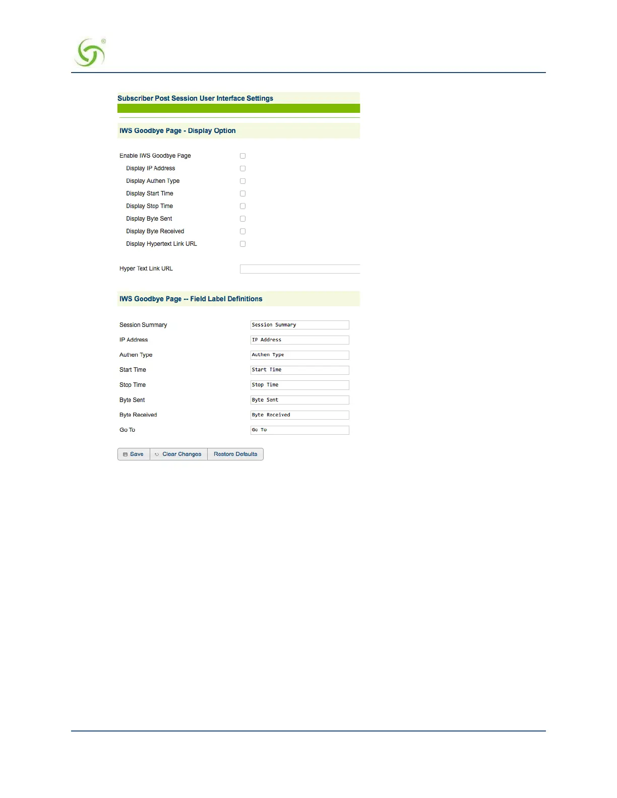 Click on the Enable IWS Goodbye Page check box to enable (or disable) the IWS Goodbye