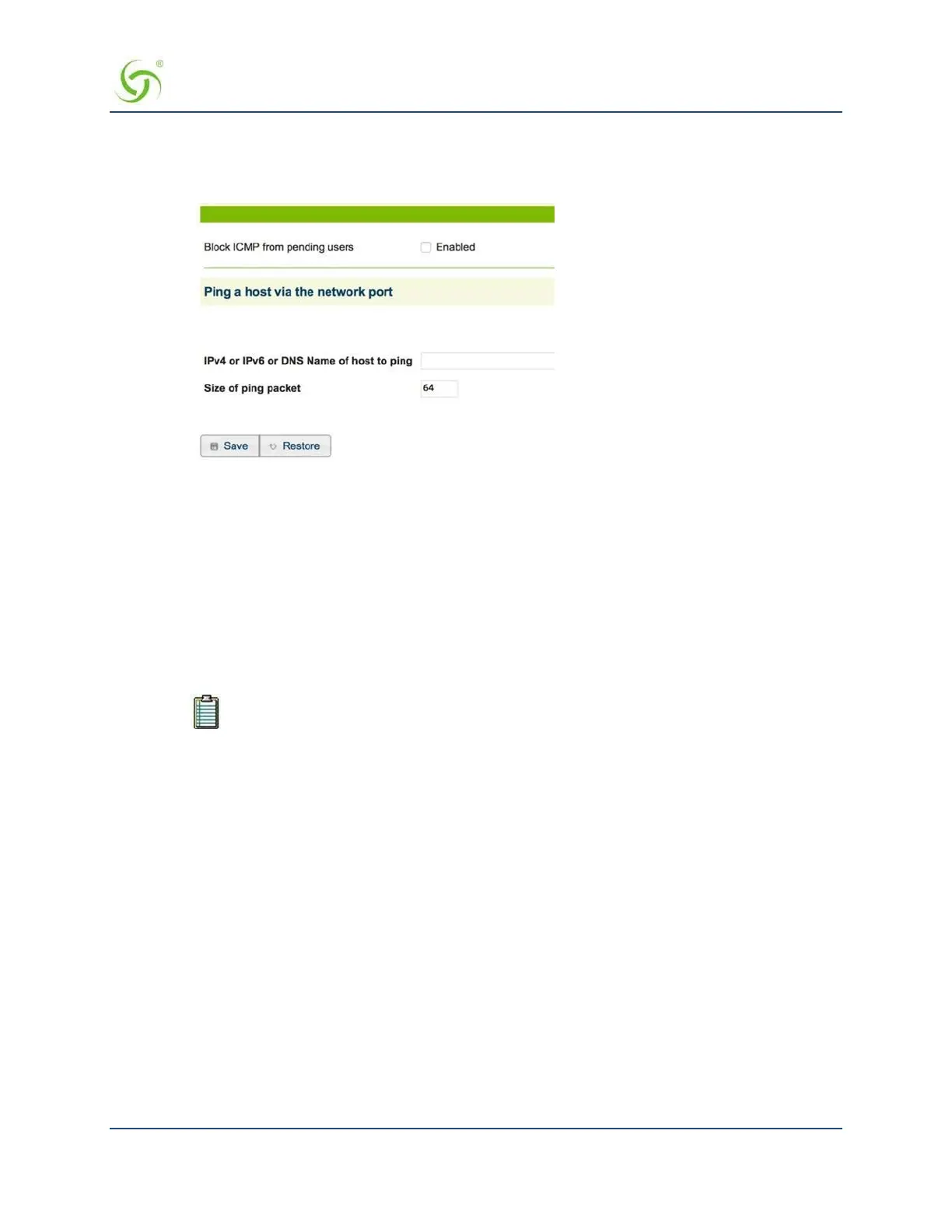 Ping a host via the network port by entering either an IP address or DNS name of host.
