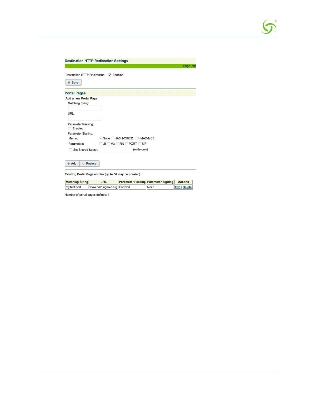 In the Portal Pages section, enter the matching string that will be directed to the portal page in the