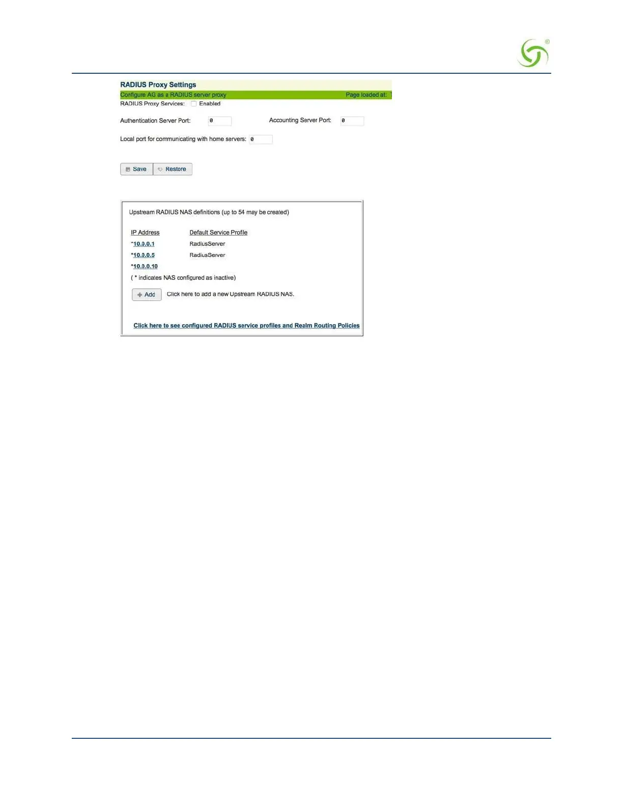 here to see configured RADIUS service profiles and Realm Routing Policies (this will take you to the