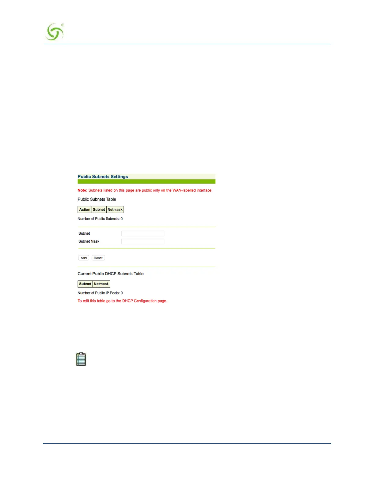 To edit the “Current Public DHCP Subnets” table, go to Managing the DHCP service