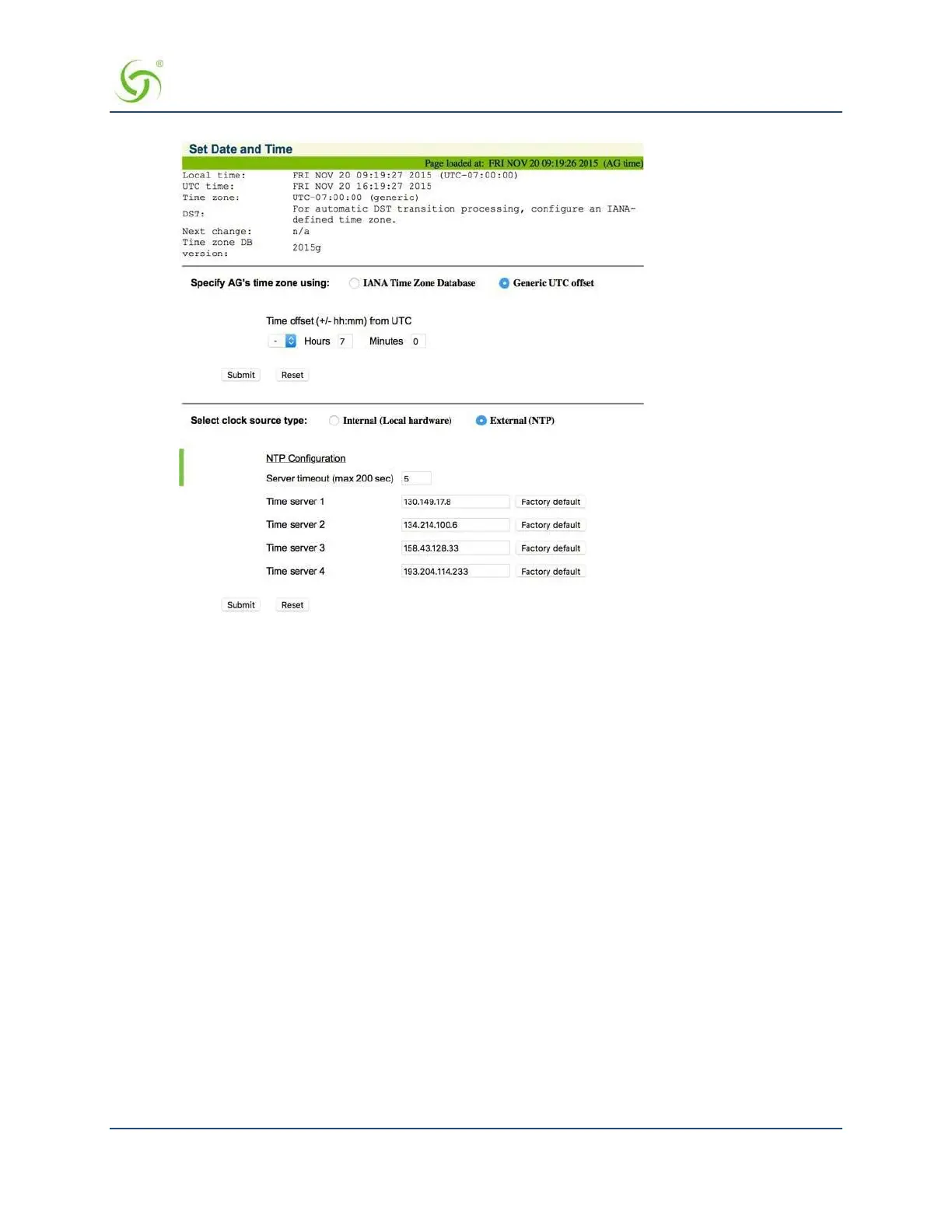 • In the Time Server 1-4 fields, enter up to 4 different NTP servers to query for the correct time.