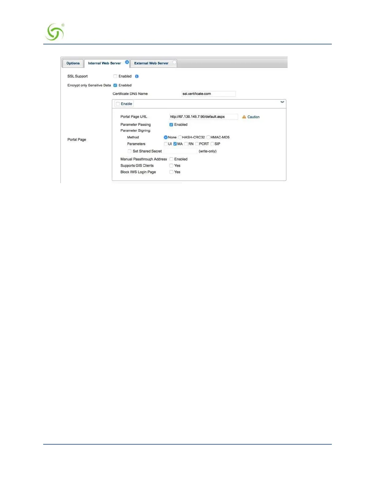 In order to utilize the parameter signing feature, the EWS or Portal Page Server used must be configured to
