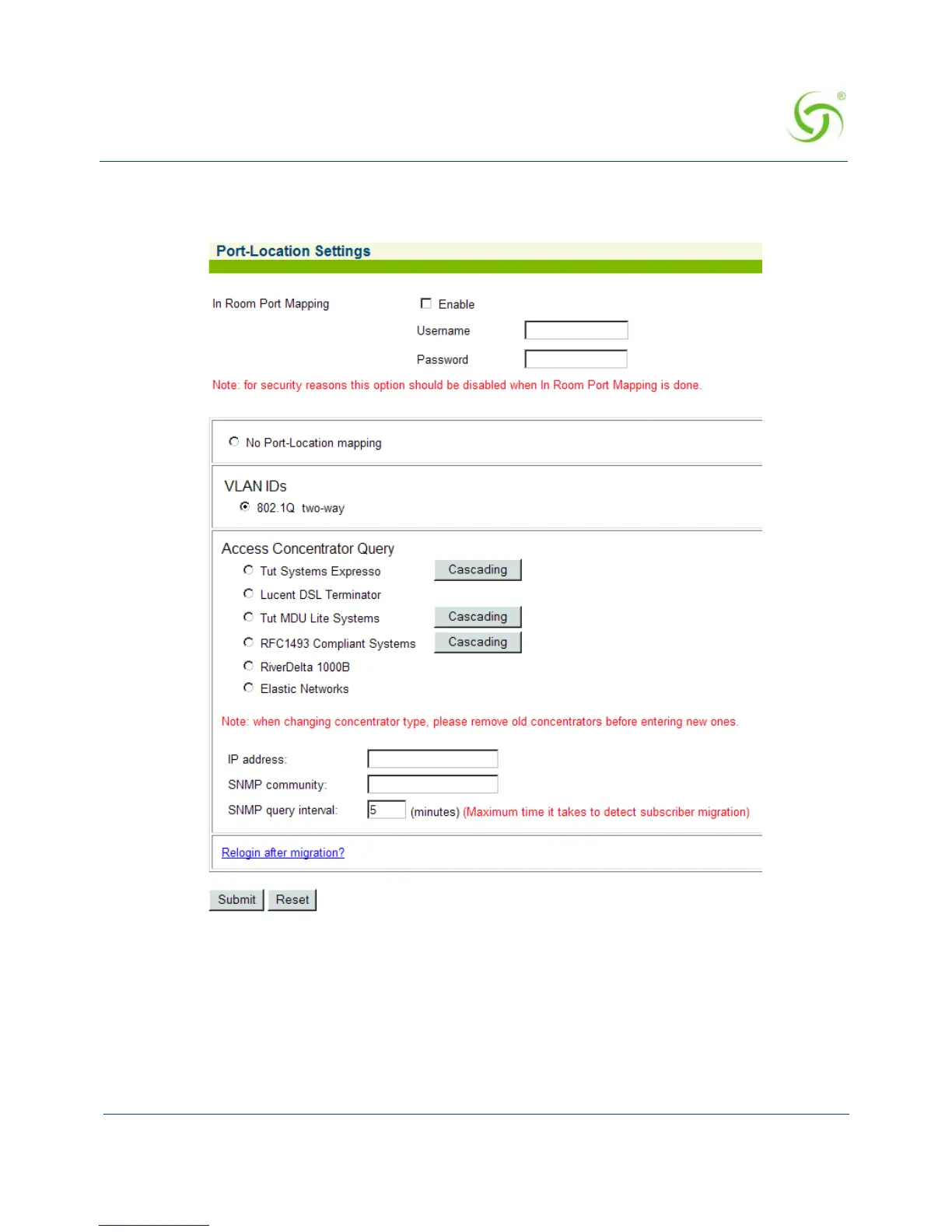 1. From the Web Management Interface, click on Configuration, then Port-Location. The