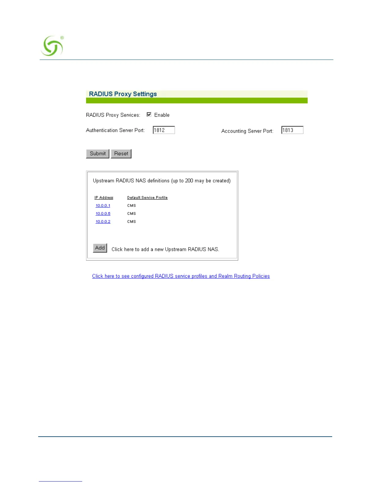 the link: Click here to see configured RADIUS service profiles and Realm Routing