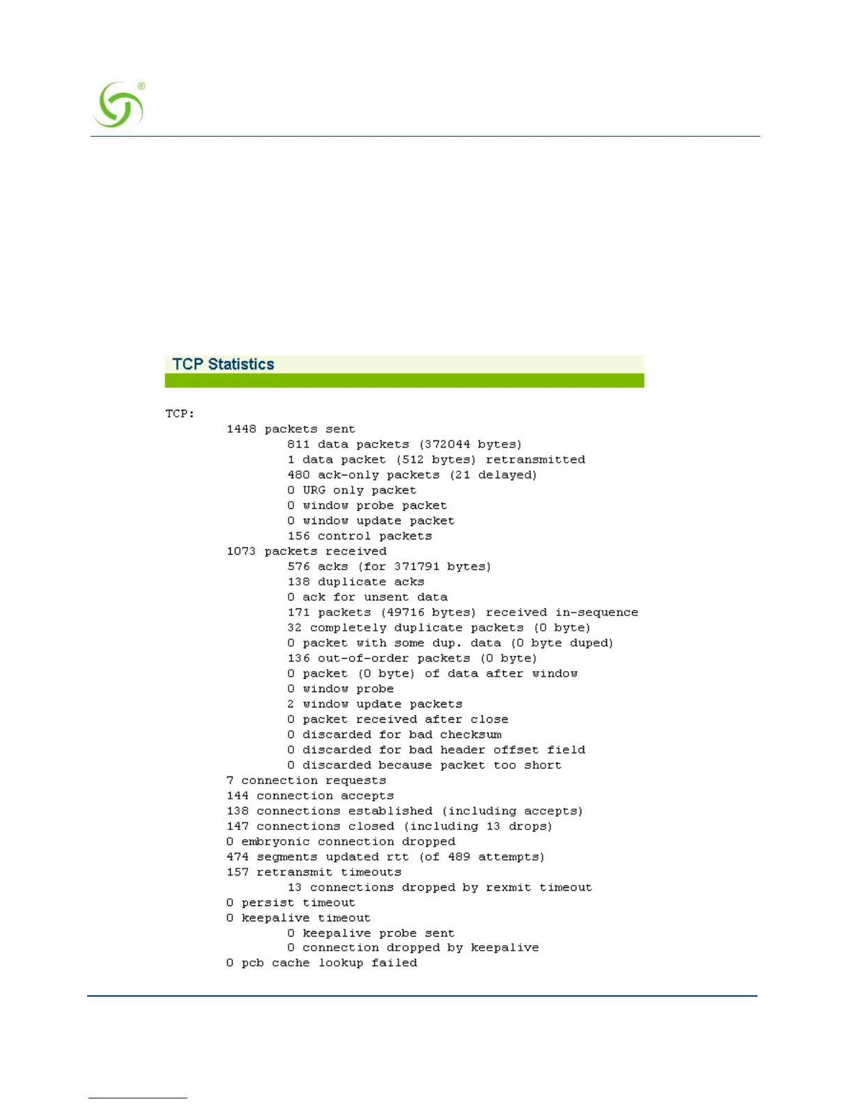 The TCP Statistics screen appears: