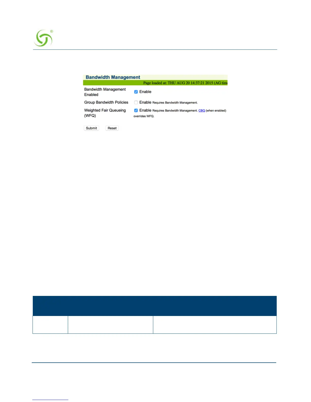 Note: The Bandwidth Management page only globally Enables and Disables Bandwidth
