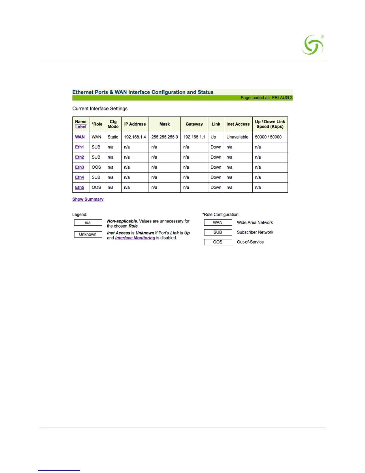 Current Interfaces Settings screen appears, which summarizes all WAN connections.