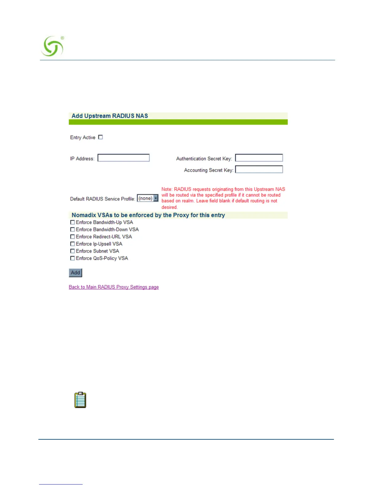 RADIUS requests originating from this Upstream NAS will be routed via the