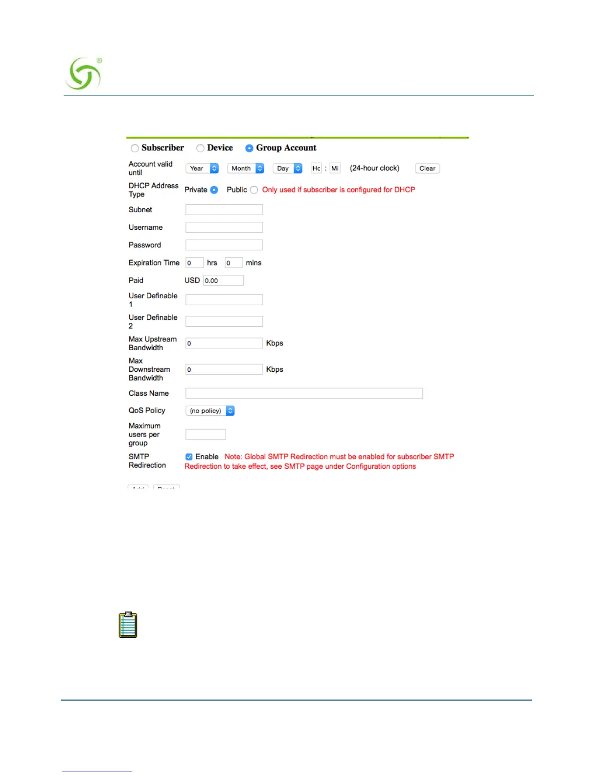 User names and passwords are required for Group Accounts.