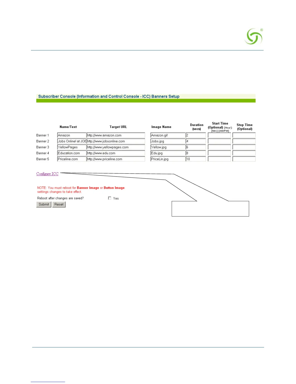 Configure Banners link. The Subscriber Console (Information and Control