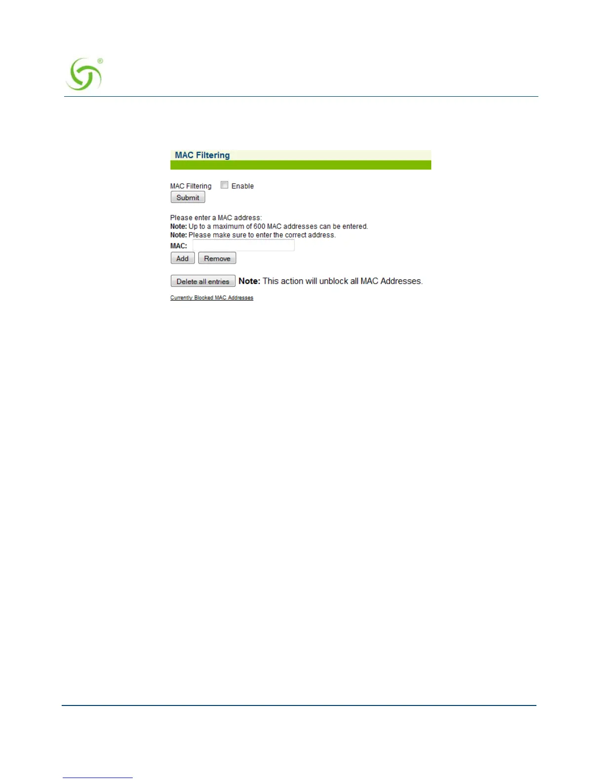 2. Click on the check box for MAC Filtering to enable (or disable) this feature, as required.