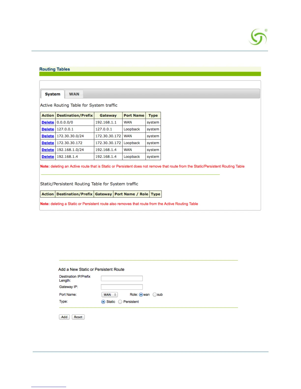 1. On the Routing Tables screen, scroll to Add a New Static or Persistent Route.