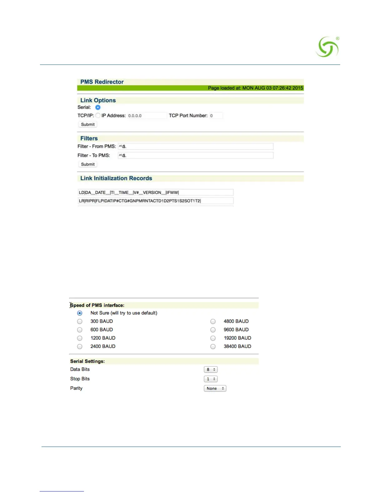 9. Select the Speed of PMS Interface and Serial Settings from the available list. If you are
