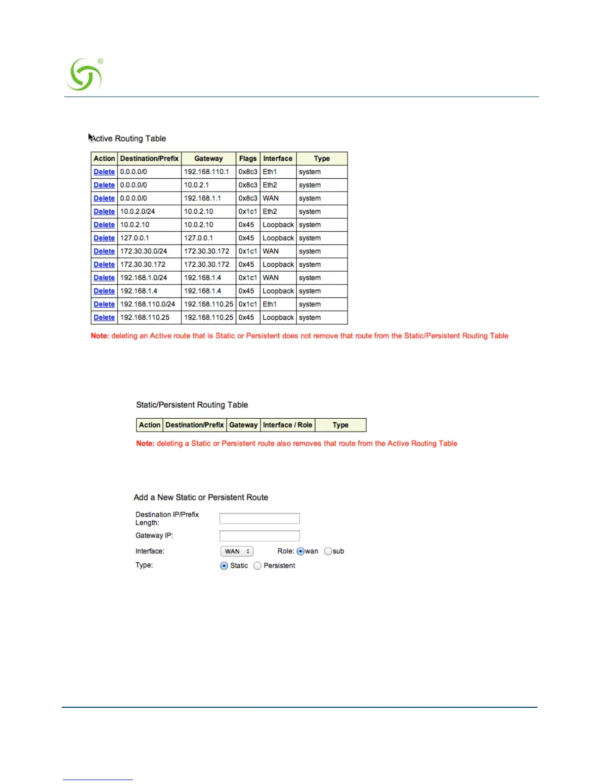Static/Persistent Routing Table, grouped in a separate section for easy reference and