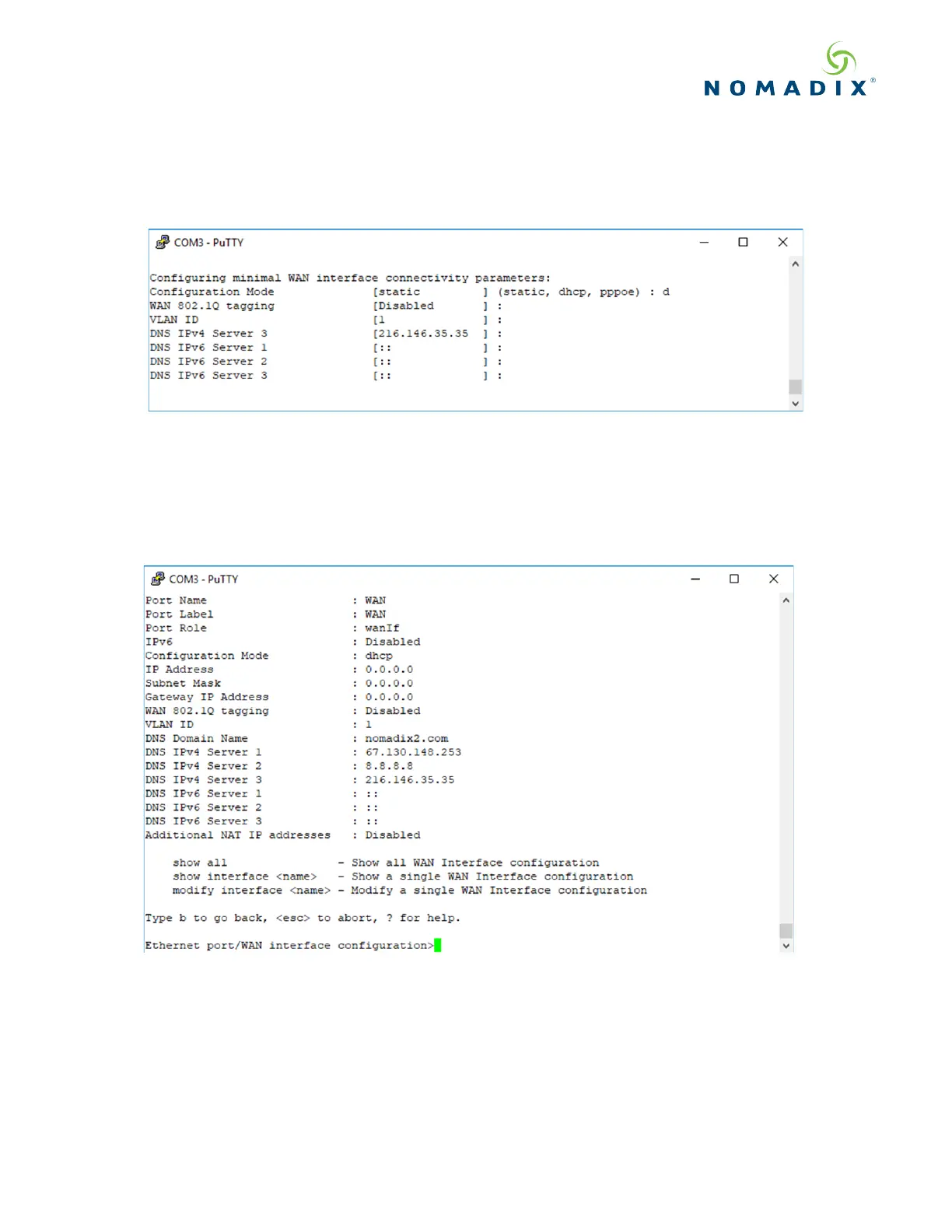 A WAN port summary page will then be displayed as shown in the example Figure 7.