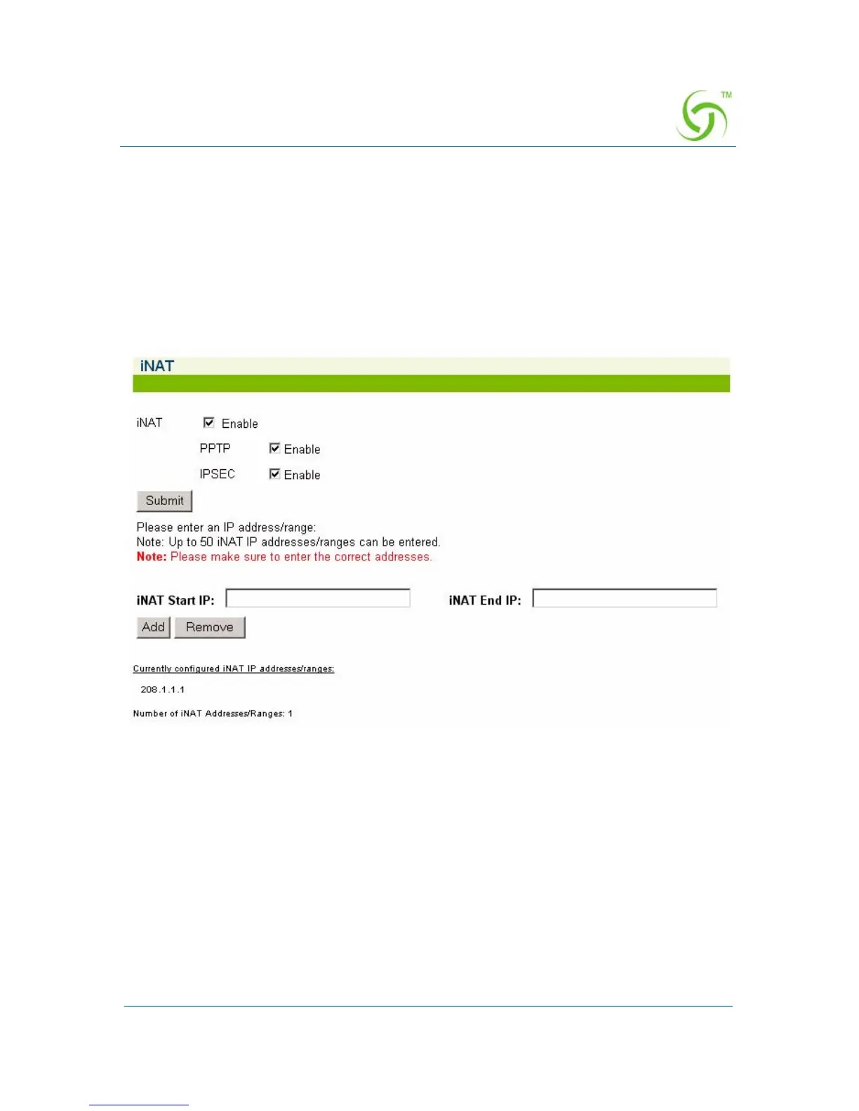 iNAT Start and iNAT End fields to enter an IP address or range of IP