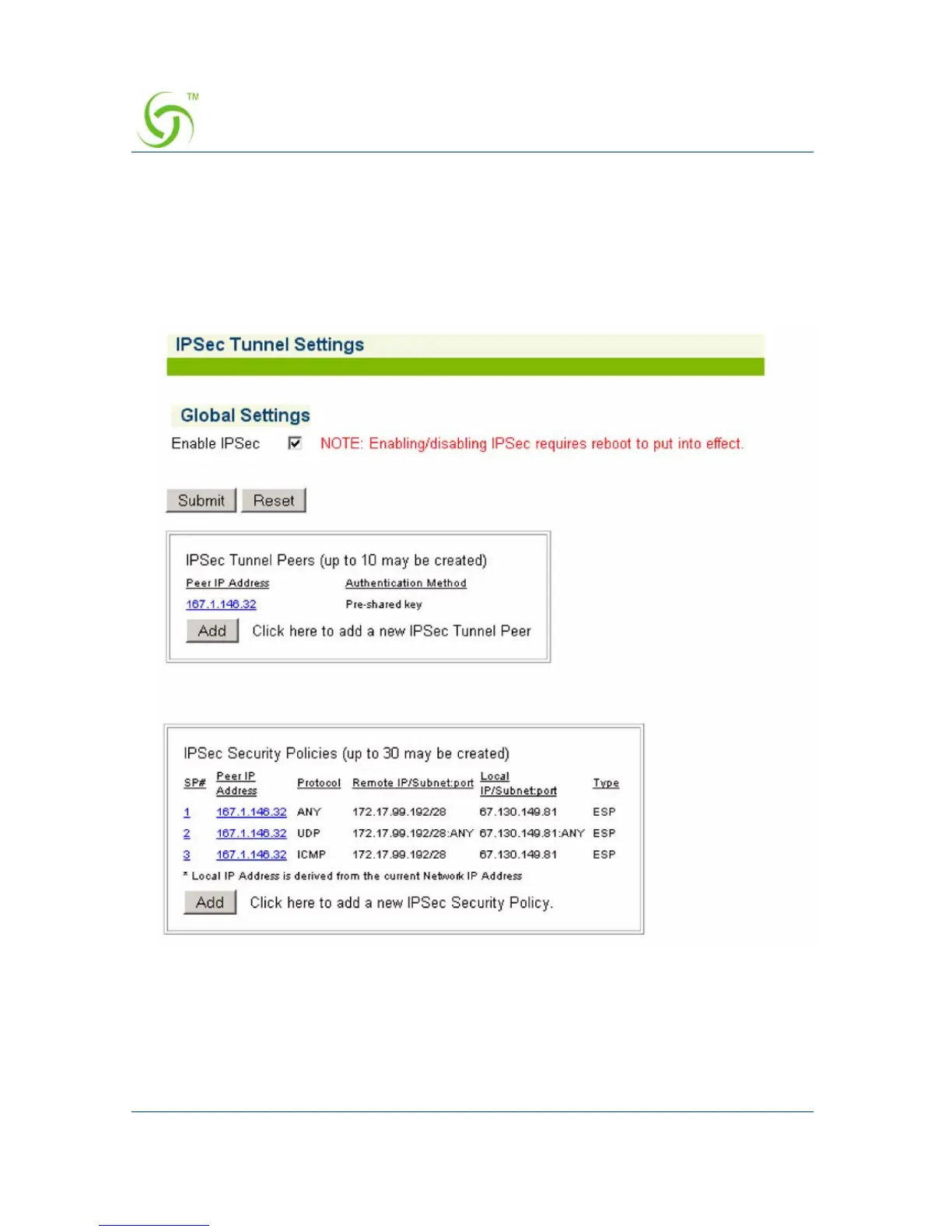 settings, and Network Info->IPSec to view IPSec Tunnel status.)