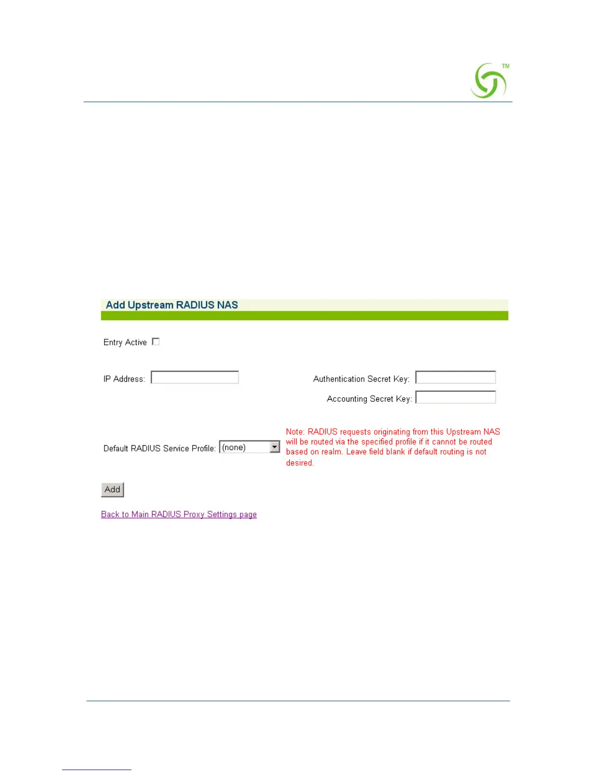 5. If you want to add a new Upstream RADIUS NAS (for example, an 802.11
