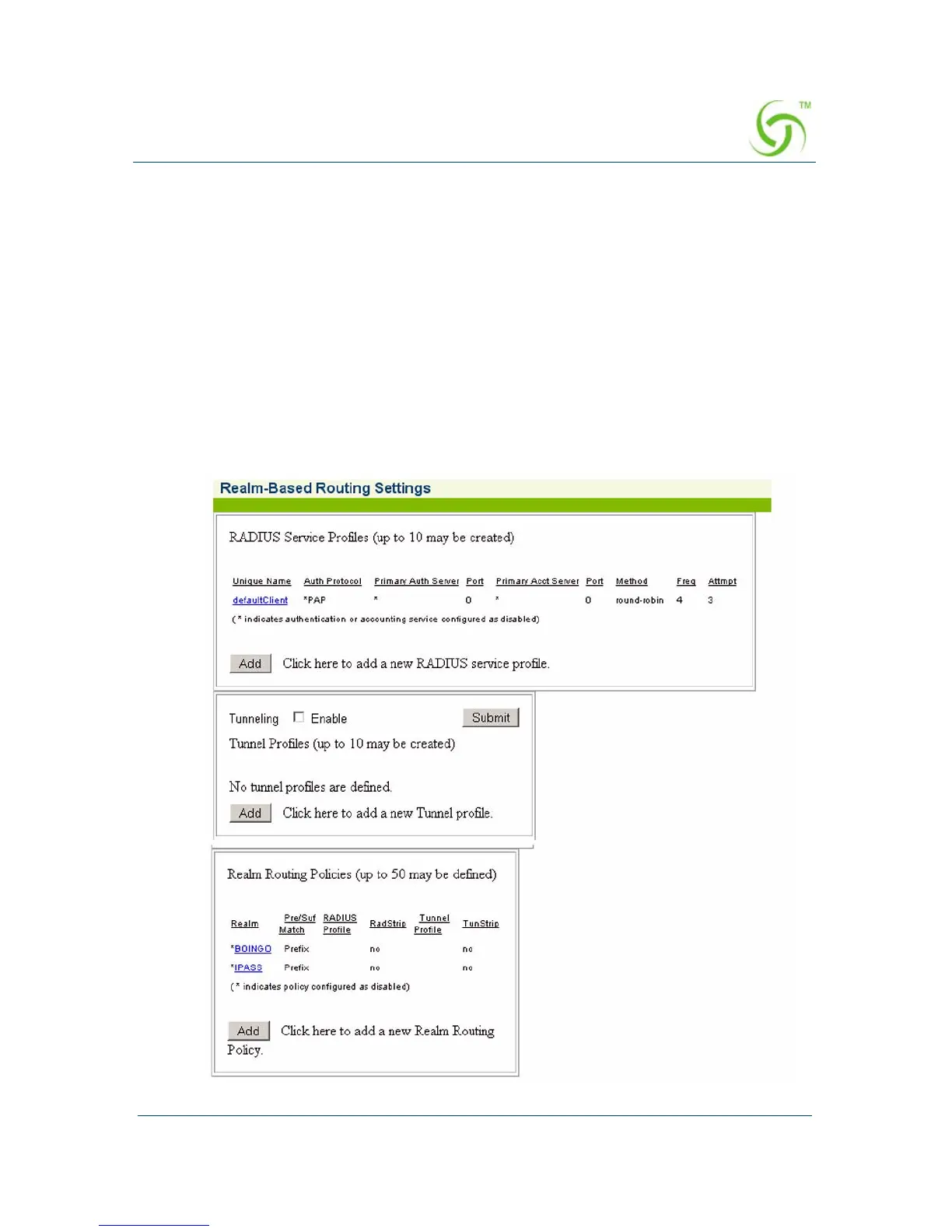 Use this procedure when setting up RADIUS Service Profiles (up to 10) and Realm-