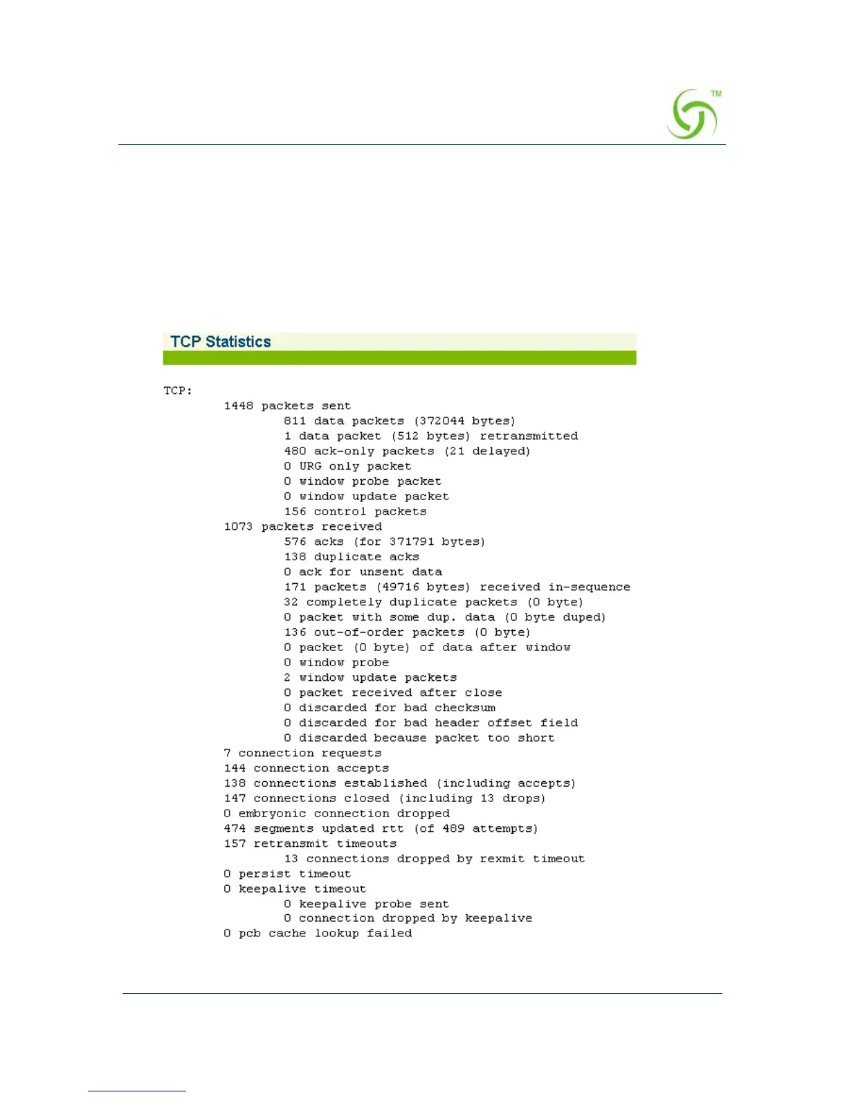 The TCP Statistics screen appears: