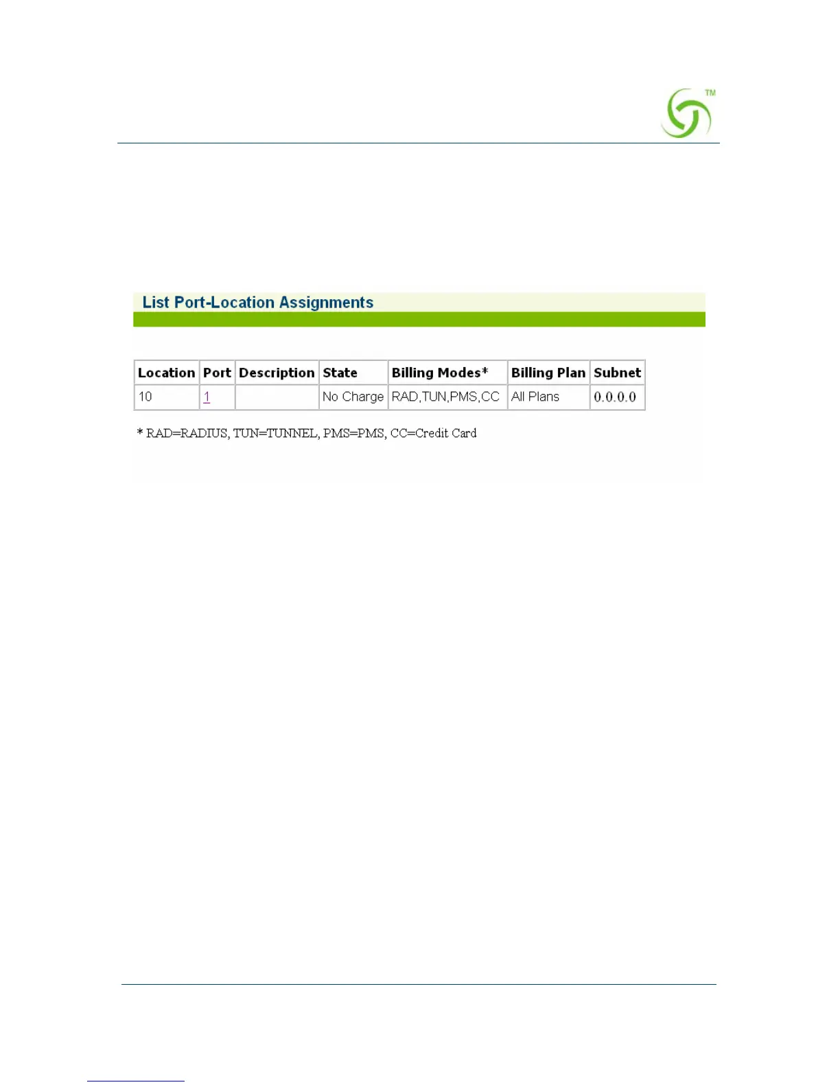 The List Port-Location Assignments screen appears: