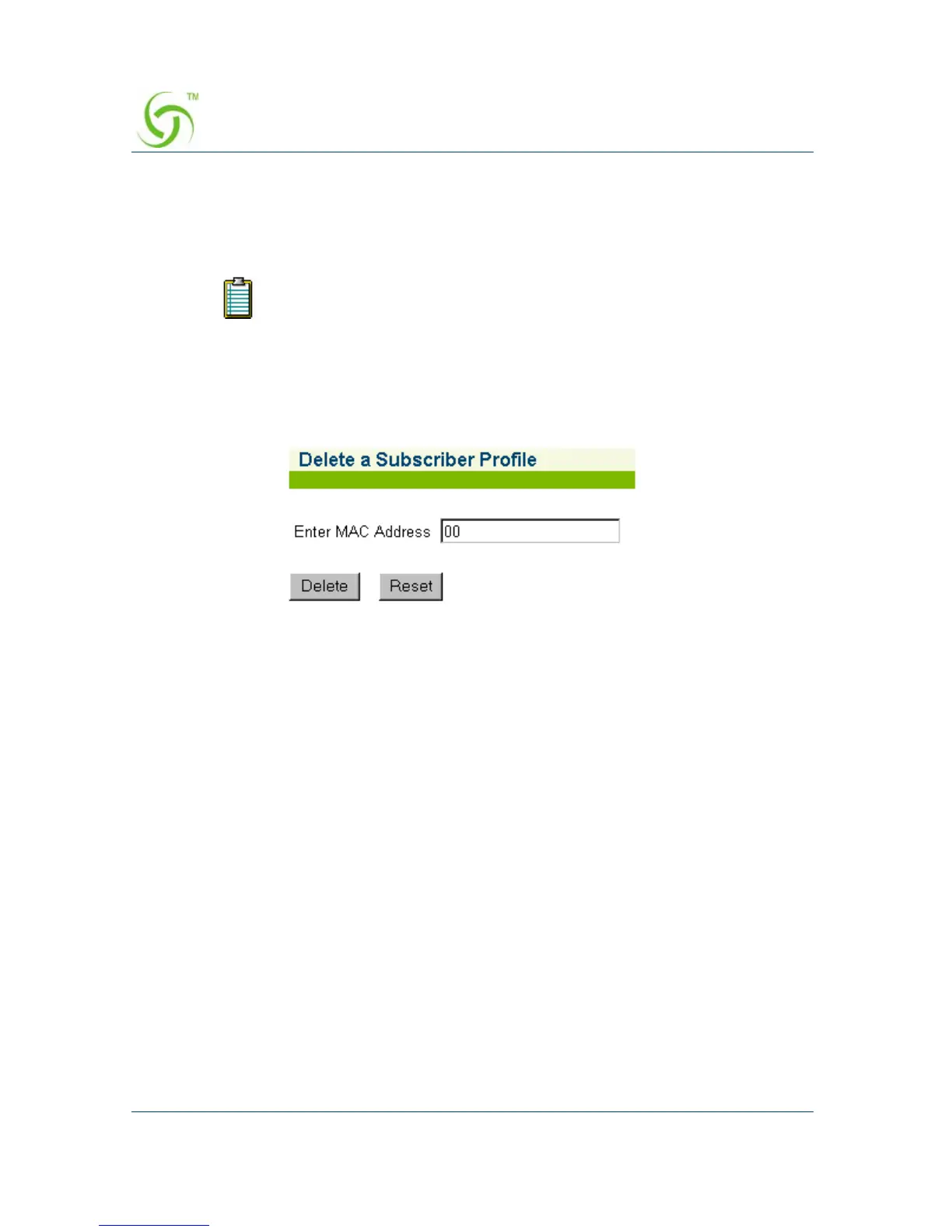 The Delete a Subscriber Profile (by MAC) screen appears: